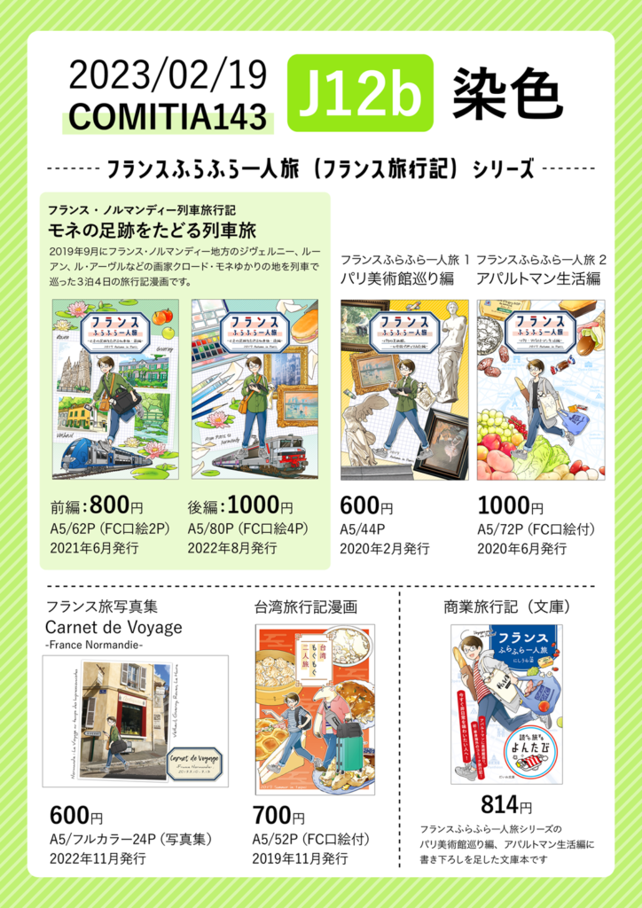 また、前回のコミティアでは展示のみだった文庫版『フランスふらふら一人旅』の販売もします。
