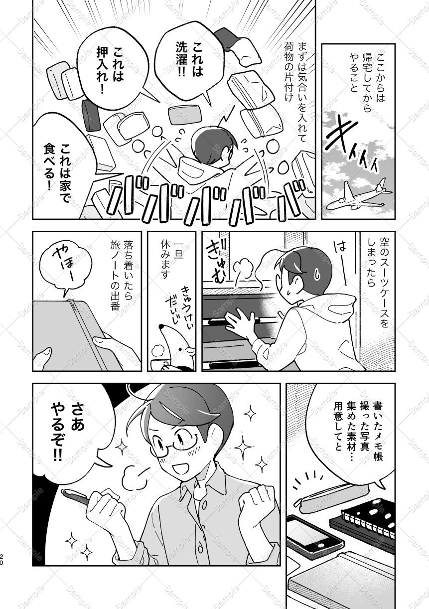 いままでの旅行記漫画とは少し題材を変えて、『フランスふらふら一人旅』や『台湾もぐもぐ二人旅』などの旅行記漫画を描く時にベースにしている、個人的な旅ノート(旅日記)に焦点を当てました。