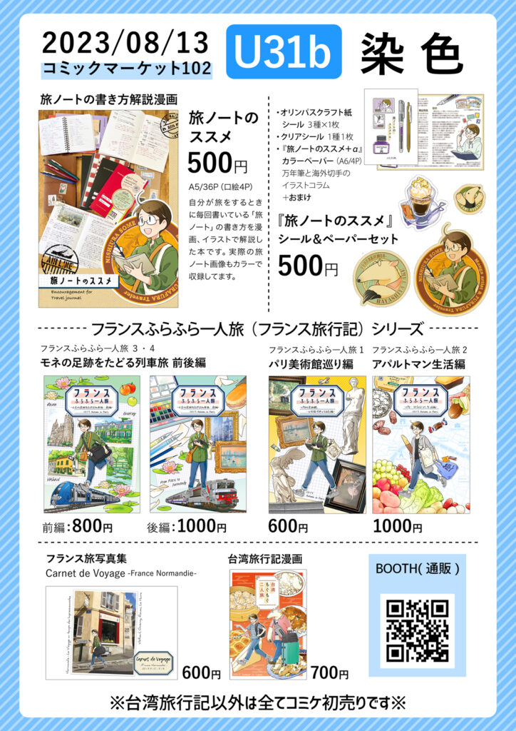 ただ、コミケの参加が2019年の冬コミ以来なので『台湾もぐもぐ二人旅』以外のフランス旅行記は全てコミケ初売りになります。