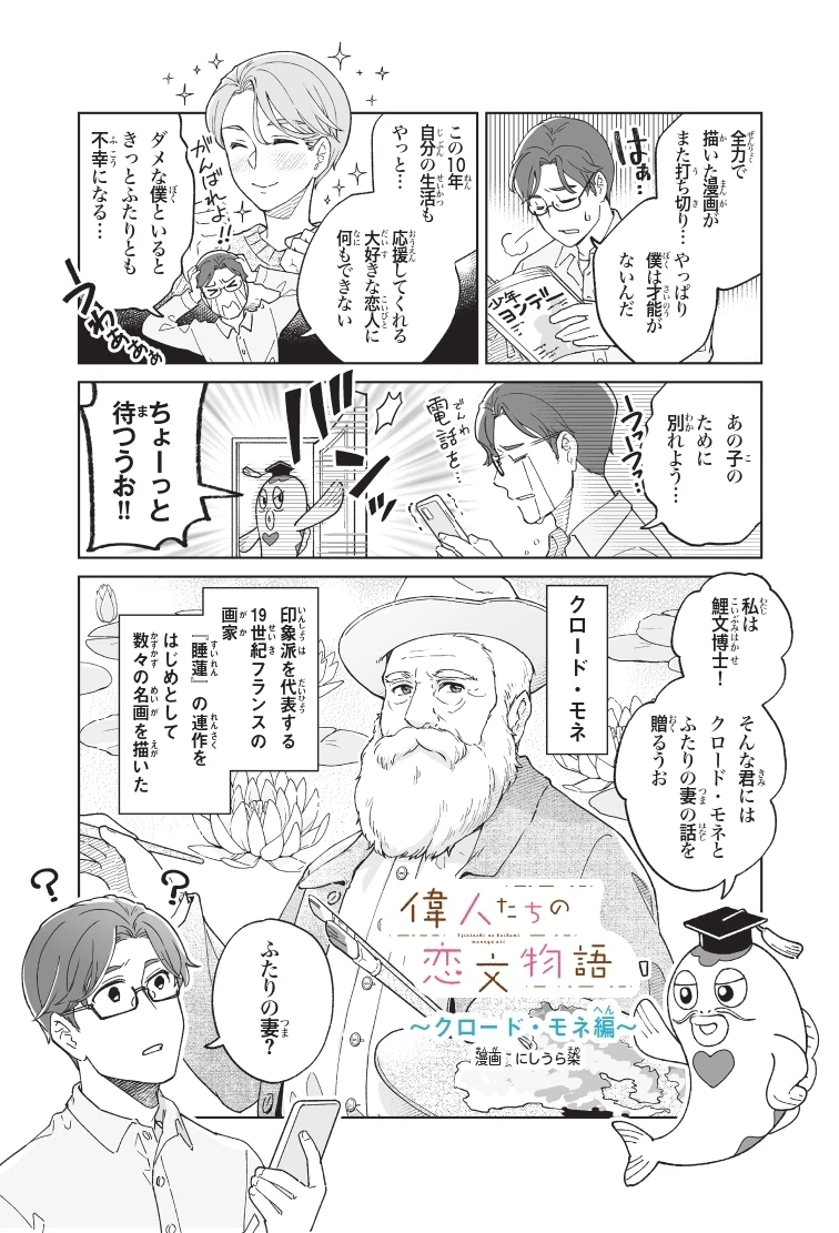 Gakkenさんの漫画サイト「ガッコミ」にて連載中の『偉人たちの恋文物語』第40回クロード・モネ編🪷の漫画を5P&カラーのミニカットを描かせていただきました。