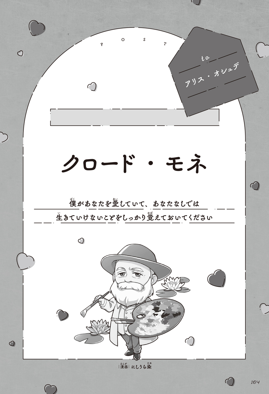 本日、10/9にGakkenより書籍『偉人たちの恋文物語 世界編』が発売しました。自分が担当した「クロード・モネ編」漫画5Pとイラストカットも収録されています。
