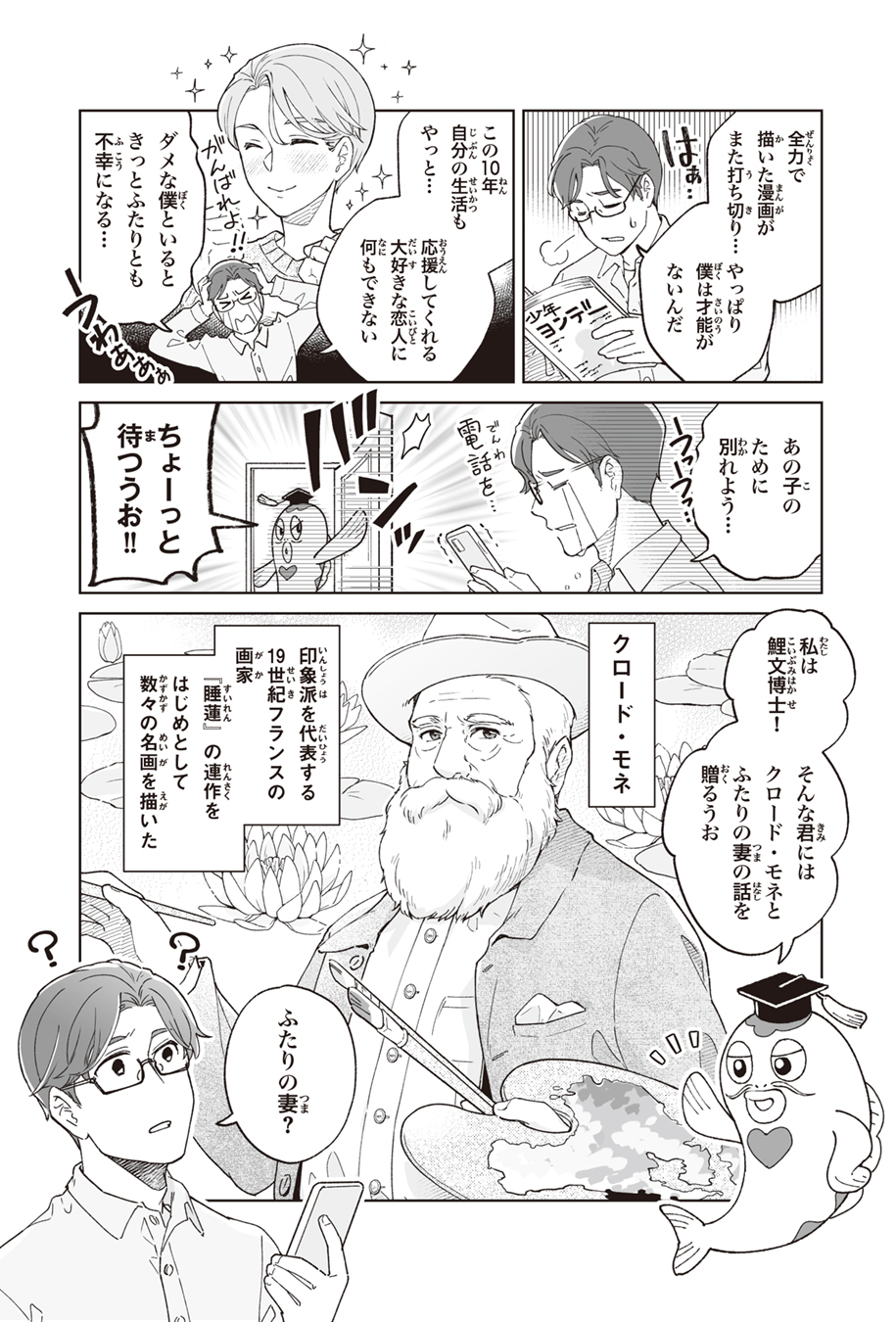 以下は自分が担当した印象は画家クロード・モネ編の扉ページと漫画の1P目です。