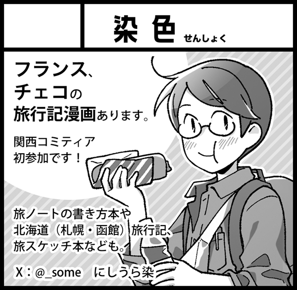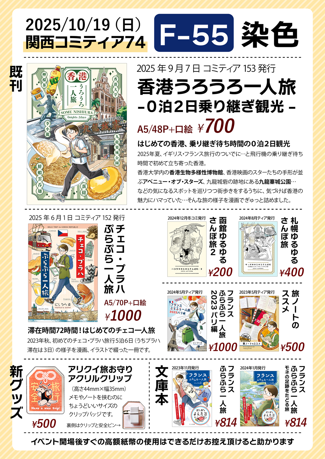 既刊の香港やチェコ、フランスの漫画旅行記本、旅ノート本などを頒布します。
