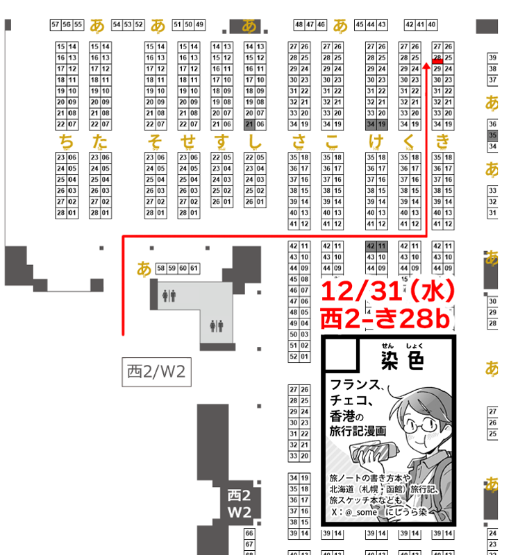 配置図はこちら。西2ホールの奥の角のあたりです。